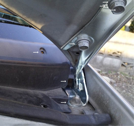そのせいなのか、開け閉めしているとボンネットに捻れが生じていたらしく、助手席側のヒンジがいつの間にか疲労骨折していたのでした。